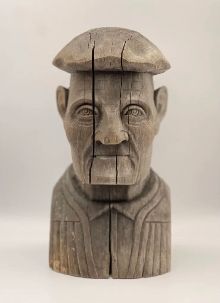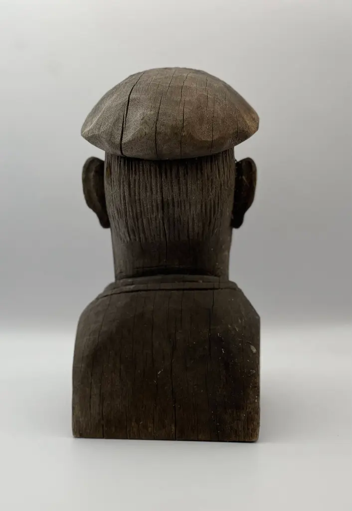 Fine carved folk art bust of a “sea captain, with great features Circa 1940’s or 50’s carved from a driftwood type wood.